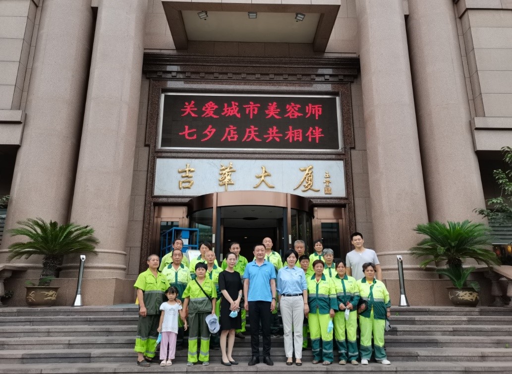吉華大廈積極投身公益事業(yè),以創(chuàng)新形式承擔(dān)社會責(zé)任。其中圍繞關(guān)愛環(huán)衛(wèi)工人項目,已持續(xù)多年。為表達(dá)對環(huán)衛(wèi)工人的關(guān)愛和敬意,感謝他們?yōu)閯?chuàng)建全國文明城市做出的貢獻(xiàn),吉華大廈在炎炎夏日為轄區(qū)環(huán)衛(wèi)工人送去清涼慰問;七夕節(jié)期間,吉華大廈聯(lián)合街道社區(qū)開展 “關(guān)愛城市美容師?七夕店慶共相伴”活動,為環(huán)衛(wèi)工人提供免費早餐。通過公益活動,吉華人踐行著誠信盡責(zé)的價值理念,彰顯國企擔(dān)當(dāng)。