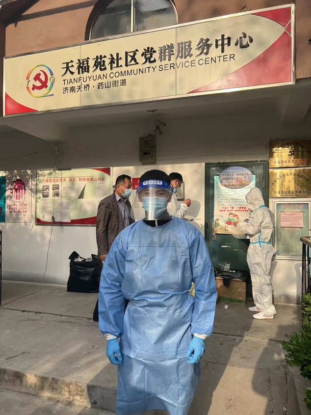 4月27日一早,來自濟(jì)南科技創(chuàng)業(yè)投資集團(tuán)有限公司黃金和張澤陽就趕赴胥家村,站好健康查驗點(diǎn)的第一班崗;濟(jì)南經(jīng)發(fā)基金管理有限公司的崔家浩與天橋區(qū)天福苑檢測點(diǎn)人員正做著做好核酸檢測維持秩序工作;濟(jì)南產(chǎn)發(fā)資產(chǎn)管理有限公司的任政分配到槐蔭區(qū)興福街道濟(jì)西社區(qū),與其他參與防疫的人員一起接受崗前培訓(xùn)后,迅速上崗;濟(jì)南經(jīng)發(fā)中小企業(yè)服務(wù)有限公司的謝炳怡與小鴨集團(tuán)的劉玉峰、金德利集團(tuán)的劉相濤一起前往高新區(qū)臨港街道,接受工作任務(wù)。隨后,趙梓淇、董振興、高志翔、張樂等幾名同事也投身于防疫的志愿者隊伍中。